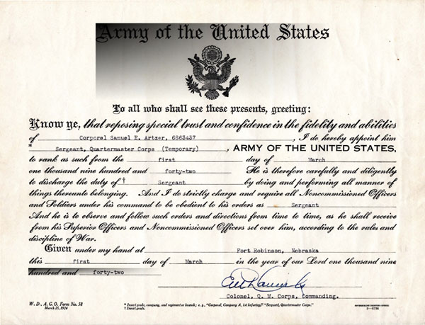 Nebraska. At the beginning of the war, Sam applied for Officer Candidate