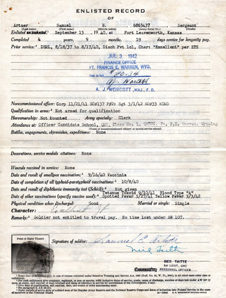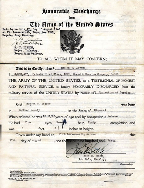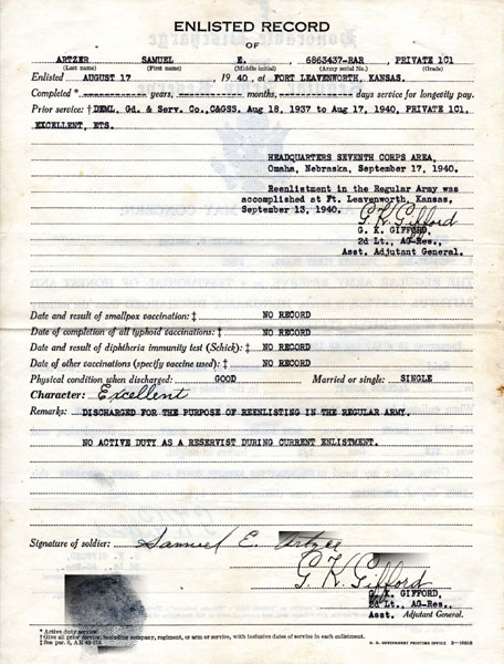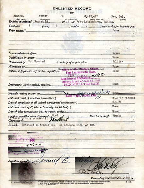 Fort Leavenworth, Kansas. Sam completed his first tour of duty and re-enlisted