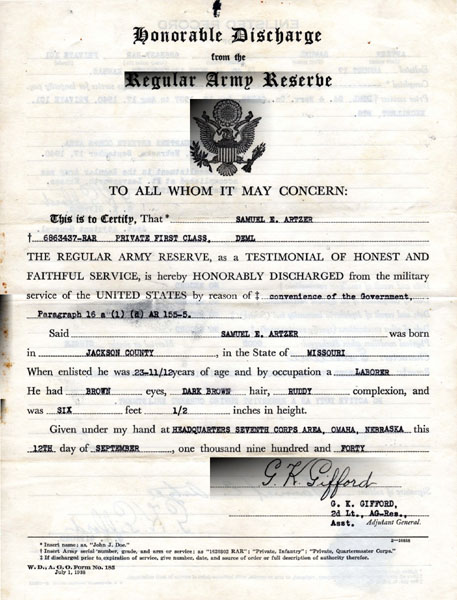 Nebraska. At the beginning of the war, Sam applied for Officer Candidate
