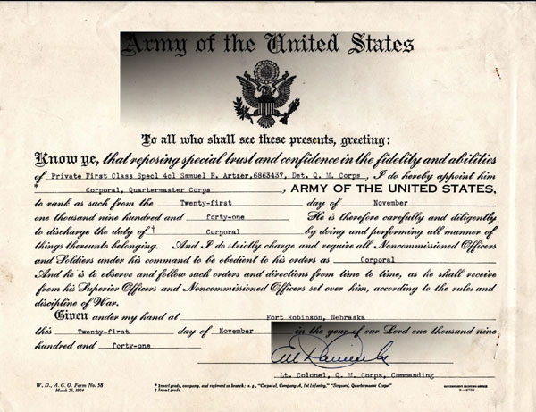 on August 17, 1940. During 1940 and 1941, he was stationed at Ft. Robinson,