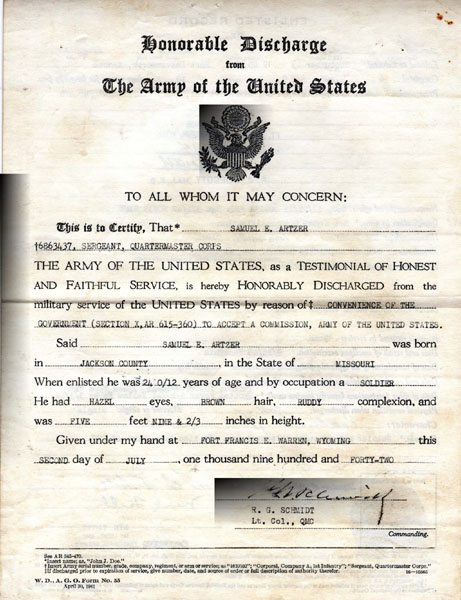 was discharged from U.S. Army in order to receive his commission as an officer