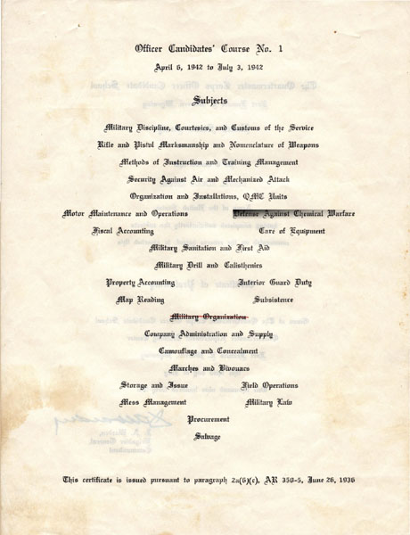 sent to OCS at Ft. Francis E. Warren, Cheyenne, Wyoming. On July 2, 1942, he